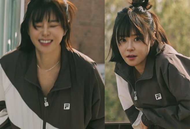 사진 속 최강희는 스포티한 팬츠와 휠라 바람막이를 매치해 캐주얼한 패션을 선보였습니다.
