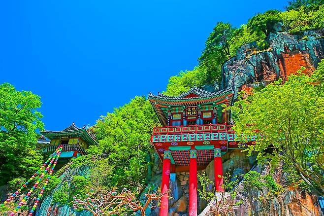 구례의 오산 정상에 자리한 사성암은 암벽 위에 세워진 독특한 사찰입니다. 사성암에서 바라보는 구례의 전경은 한 폭의 그림처럼 펼쳐지며, 이곳의 절경은 마치 하늘에 떠 있는 듯한 착각을 일으킵니다.