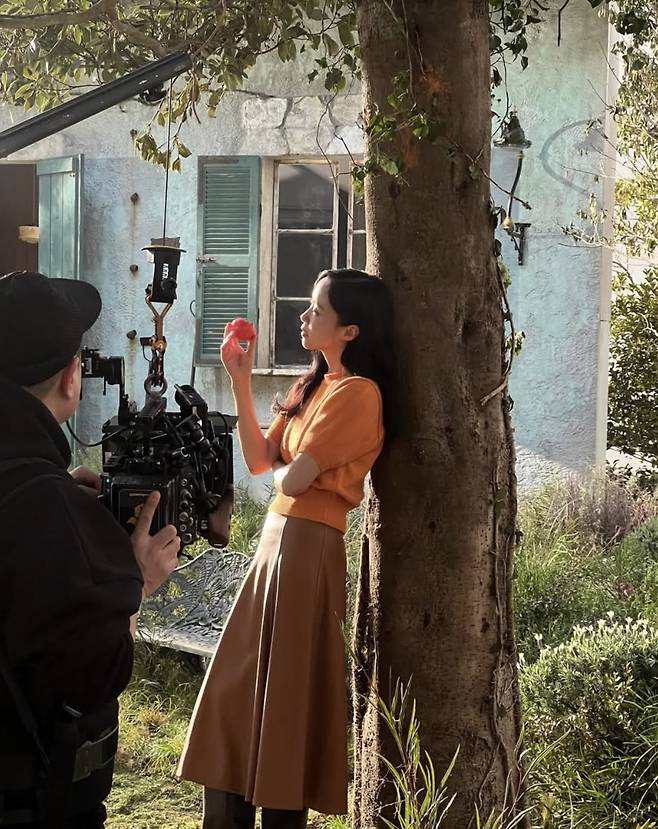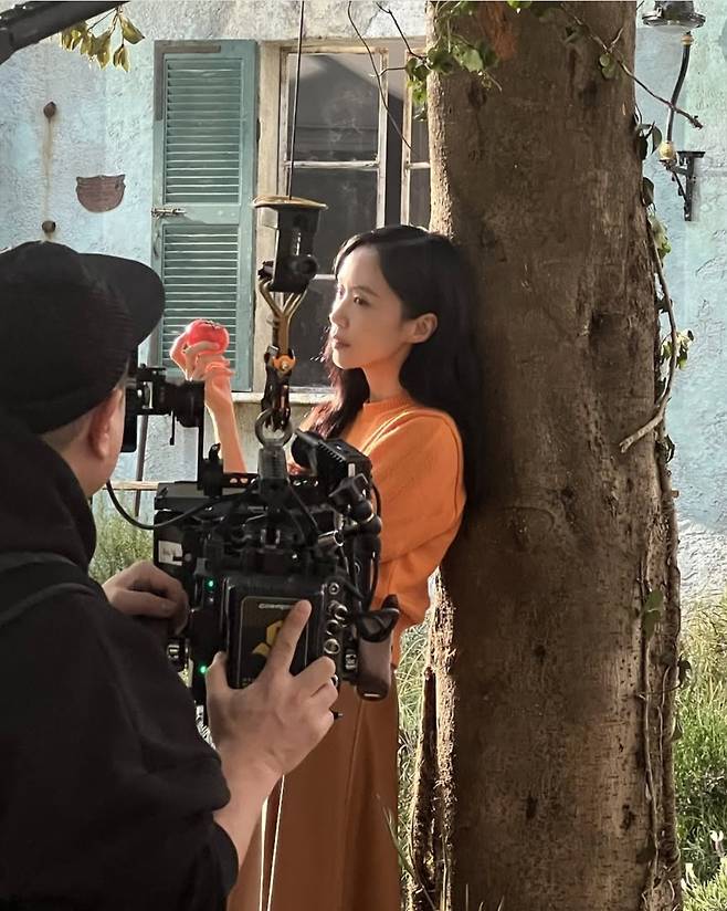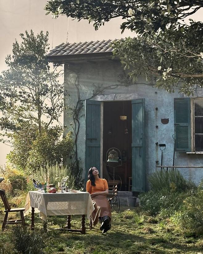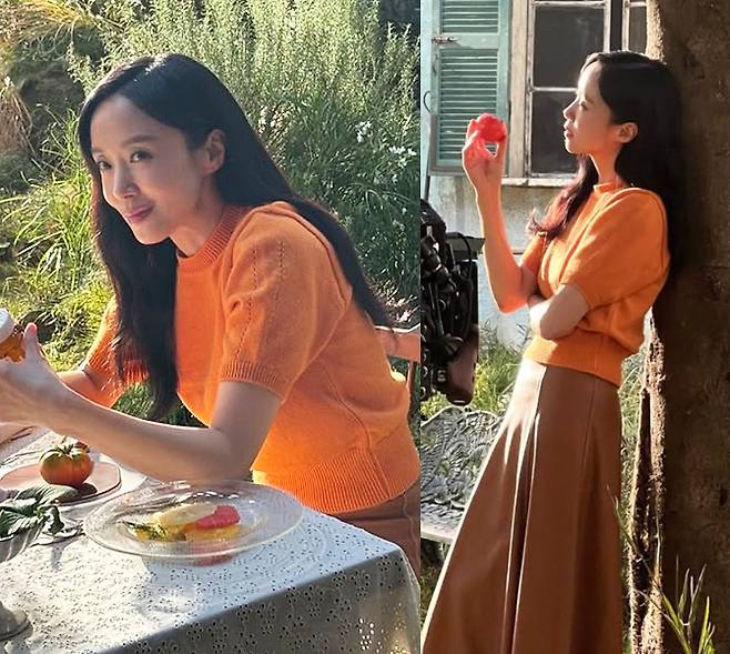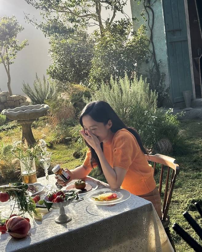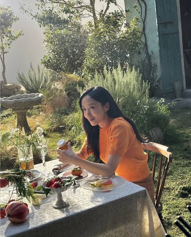 카메라 앞에서 자몽을 들고 있는 장면은 마치 한 장의 회화처럼 연출됐고, 탁 트인 정원과 햇살이 어우러지며 그녀의 패션은 감성 영화의 한 장면 같은 분위기를 자아냈습니다.
