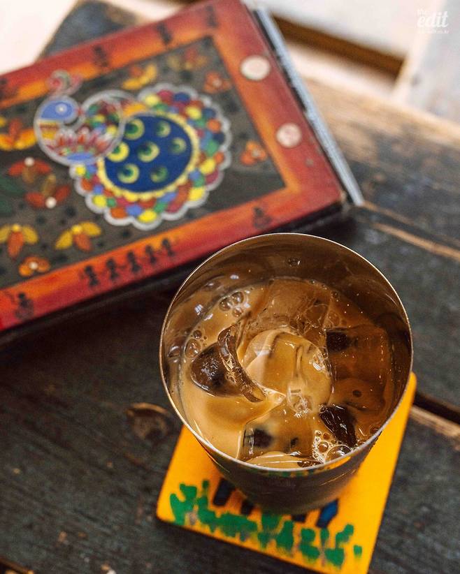 공간은 카페와 상점으로 나뉜다. 먼저 왼편에는 ‘그 가게 짜이집’이 있다. 인도식 밀크티 ‘짜이’와 전통 요거트 음료 ‘라씨’, 그리고 커리를 파는 카페다. 인도에서는 40도가 넘는 날씨에도 펄펄 끓인 짜이를 마신다는데, 땀을 뻘뻘 흘리며 도착한 탓에 차마 따뜻한 음료를 마실 엄두가 나질 않았다. 더위에 굴복하고 사직동 그 가게에서 개발한 레시피로 만든 아이스 카다멈 짜이를 주문했다.