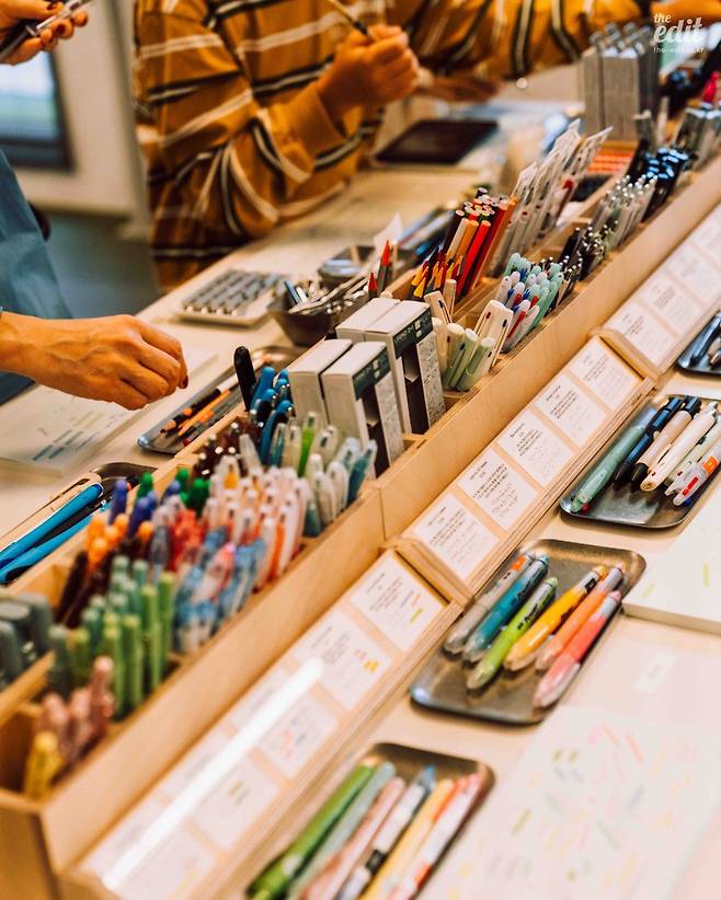 과연, 그런 고민이 공간 곳곳에서 느껴졌다. 우선 기록을 위한 다양한 재료가 준비되어 있다. 단순히 제품을 전시하고 판매하는 것을 넘어 기록 초보자를 위한 좋은 가이드를 제시한다. 메모지와 노트, 형광펜, 볼펜 하나하나 직접 사용한 예시들을 함께 두어 이건 이렇게 써볼 수 있겠구나, 이건 저렇게도 활용할 수 있네, 하며 구경하는 맛이 쏠쏠하다. 정갈한 기록들을 보고 있으면 아날로그 기록이 익숙지 않은 사람도 ‘나도 한 번 써볼까?’라는 생각이 절로 들 것 같다. 파피어 프로스트는 이미 기록을 즐기는 사람도, 아직 시작하지 않은 사람도 모두 아우르는 공간이다.