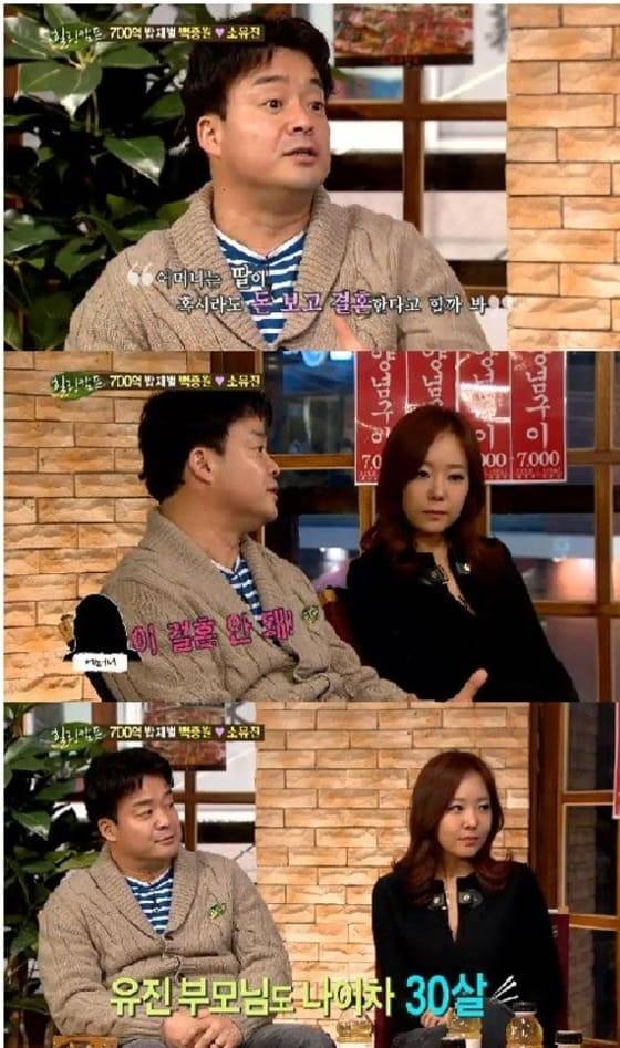 그러나 소유진 부모님은 단순히 '나이 차이' 때문에 백종원을 반대한 게 아니었습니다. 자신의 딸이 돈을 보고 결혼한다고 할까 봐 반대하셨던 것입니다.