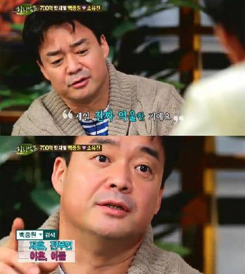지난 2014년 SBS 예능프로그램 ‘힐링캠프, 기쁘지 아니한가’(이하 힐링캠프)에 출연한 백종원은 “연관검색어에 백종원을 검색하면 ‘재혼 전부인 이혼 아들’이라고 뜬다. 이것 때문에 (아내 소유진의) 장인어른이 호적등본을 보여달라 했다”고 털어놨습니다.