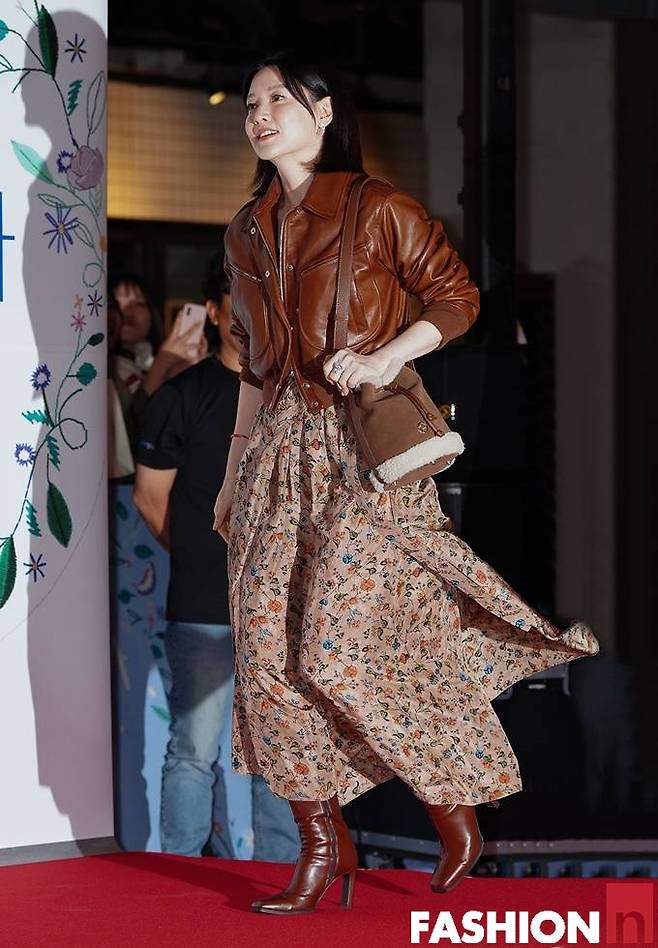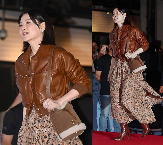 배우 이영애가 브라운 가죽 재킷으로 뽐낸 시사회룩으로세월을 뛰어넘는 우아한 자태를 자랑했다.