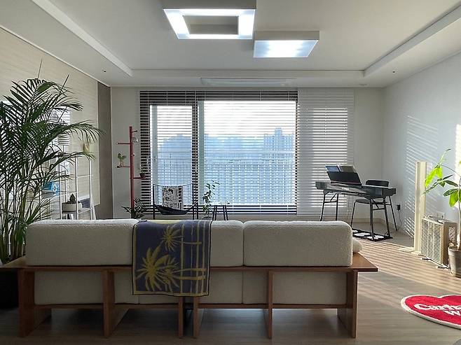 집들이를 통해, 제가 가장 추천드리고 싶은 가구는 소파예요. 원목틀에 패브릭 쿠션이 올라간 것도 멋지지만, 뒤태가 특히나 아름다워서 다양한 가구 배치를 할 때 아름다운 장면을 연출해 주는 것 같습니다. 전체적으로 높이가 상당히 낮아서 공간을 답답하지 않게 해주는 것도 좋고요. 또 옆으로 누웠을 때 편안함이 남달라서 특히나 애정 한답니다.