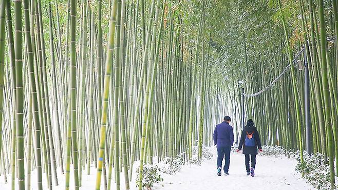 겨울의 대나무숲은 한 폭의 동양화 그 자체입니다.