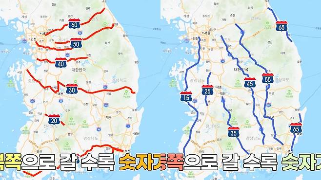 우리나라 도로 번호 체계의 기본은 명확하다. 홀수는 남북 방향, 짝수는 동서 방향 도로다.