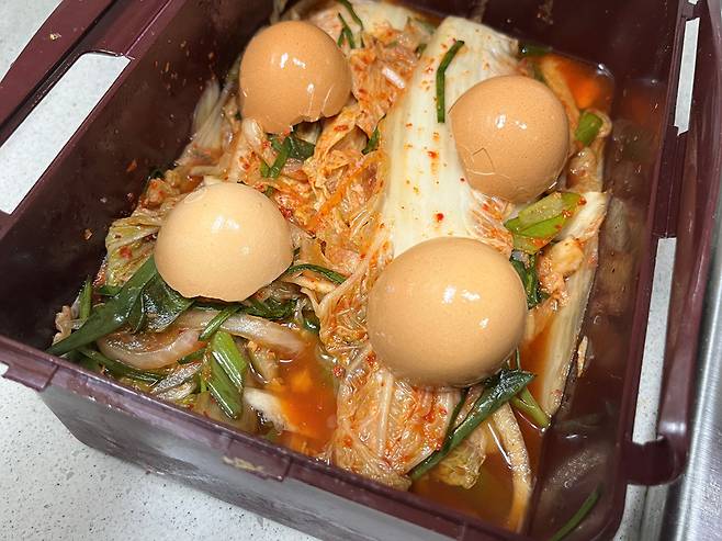 김치통에 계란 껍데기를 넣으면 김치가 시는 것을 지연시킬 수 있습니다. 계란 껍데기에 들어 있는 칼슘 성분이 김치가 빨리 시는 것을 막는 효과가 있습니다.