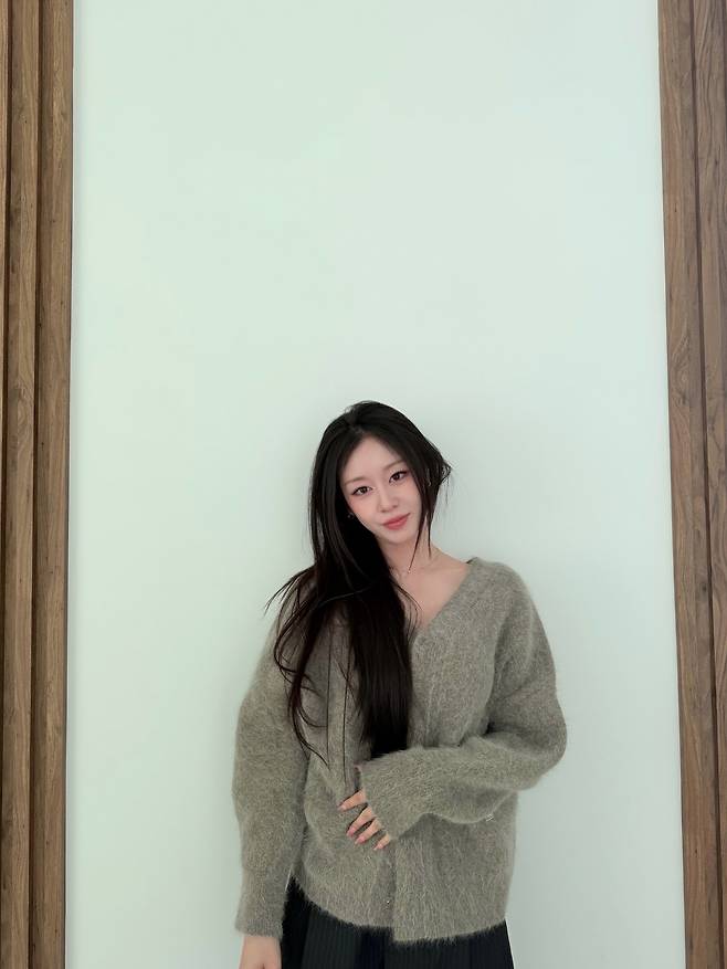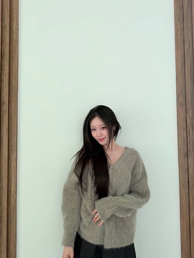 사진 속 지연은 차분한 그레이 컬러의 루즈핏 니트 카디건을 착용해 포근하면서도 세련된 분위기를 연출했는데요.