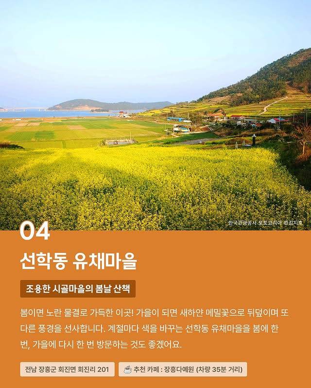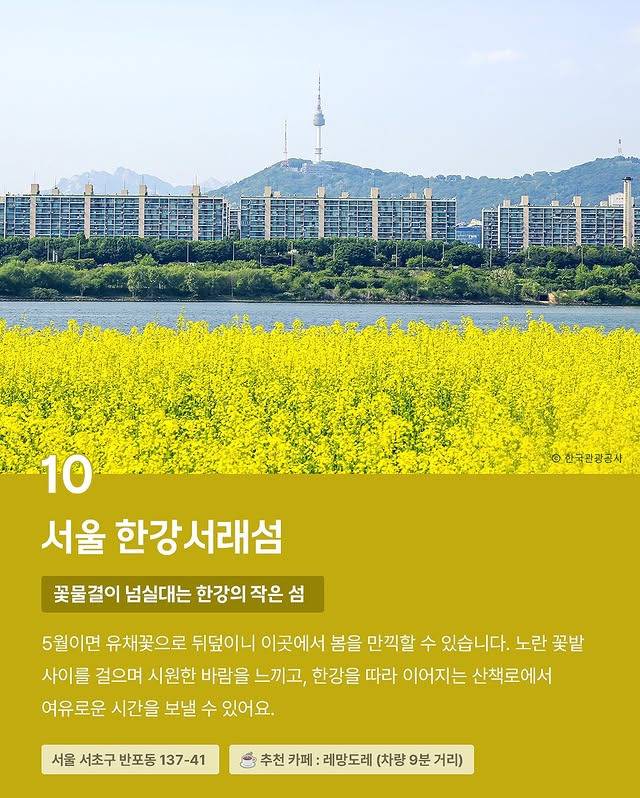 오늘은 이와 관련하여 전국의 유채꽃 명소 10곳을 소개합니다^^