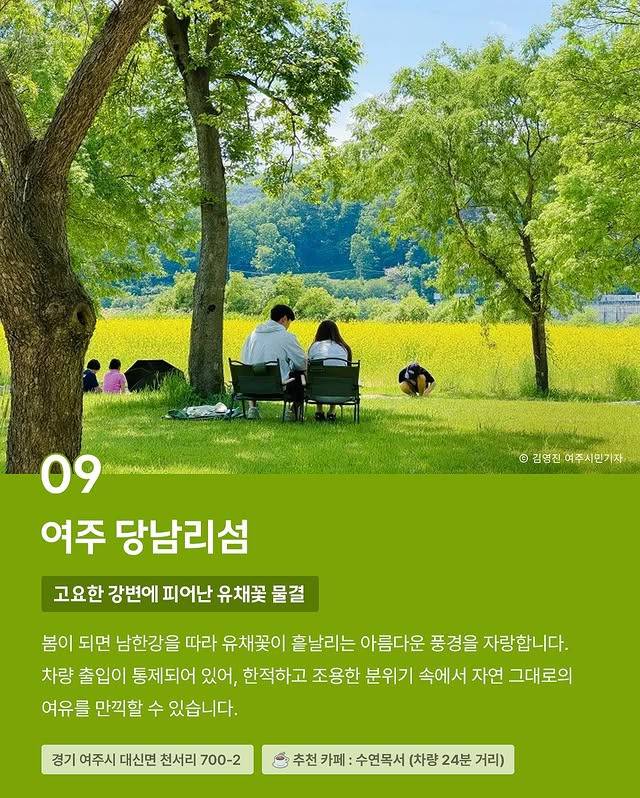 봄이 되면 남한강을 따라 유채꽃이 흩날리는 아름다운 풍경을 자랑합니다.