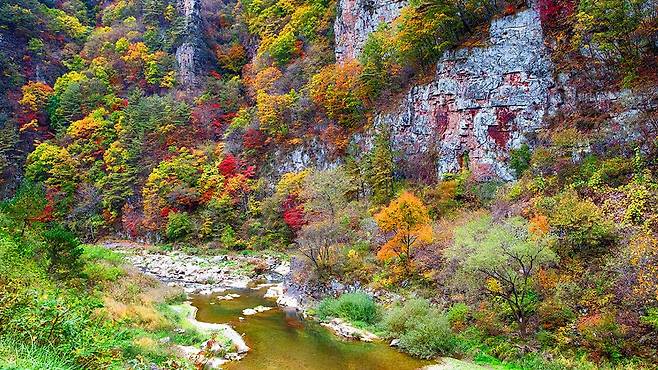 이곳은 단풍 풍경만으로도 충분히 눈길을 끌지만, 그 속에 숨겨진 수억 년 지질의 흔적은 여행을 더욱 특별하게 만듭니다.