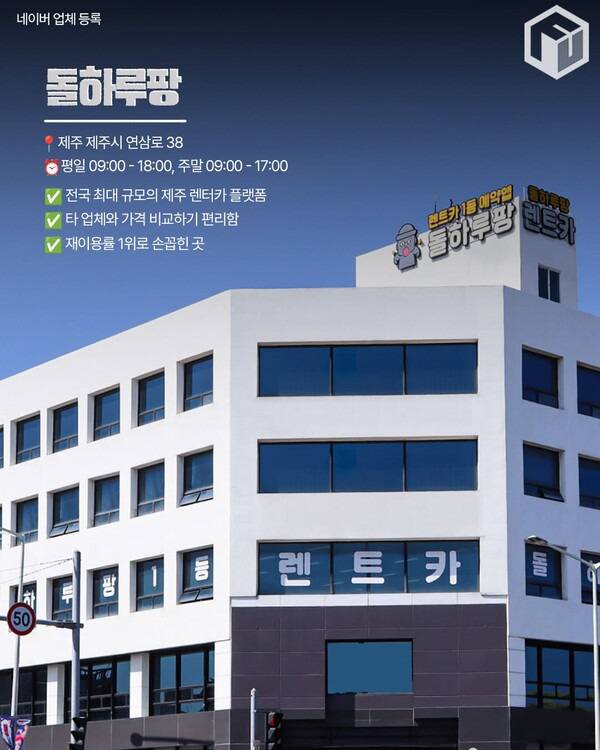 여러 조건을 따져보고 선택하고 싶다면 ‘돌하루팡’을 제주 렌터카 업체로 추천드립니다.