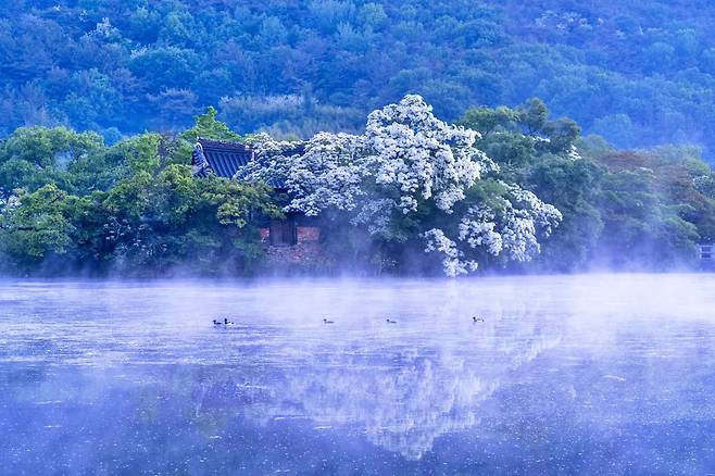 경남 밀양의 고요한 연못 위에 신록이 내려앉았다. 봄의 끝자락, 여름의 문턱에서 이팝나무와 왕버들이 수면에 그림자를 드리우는 풍경으로 유명한 ‘위양지’는 지금, 한 해 중 가장 아름다운 순간을 맞이하고 있다.