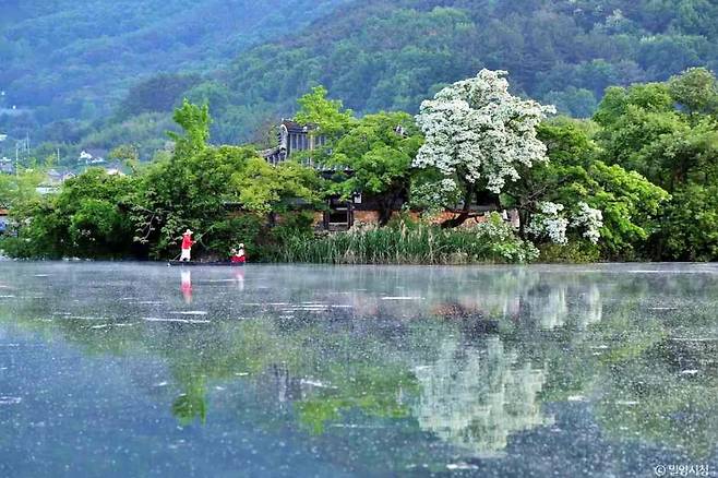 수면에 비친 이팝나무와 왕버들, 그리고 순백의 반영이 어우러진 위양지의 지금. 봄이 끝나기 전, 이 아름다움을 직접 마주해보길 추천한다.