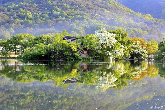 수령이 오래된 이팝나무와 느티나무, 감나무, 왕버들이 연못 둘레를 따라 줄지어 서 있고, 그 풍경이 물 위에 고스란히 비치는 모습은 ‘한국의 비밀 정원’이라는 별칭이 붙을 만큼 깊은 감동을 준다.