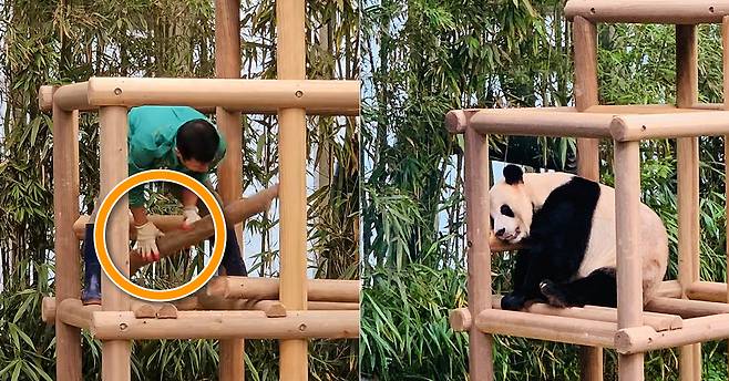 러바오가 좋아하는 자리의 발판을 일부 철거한 것이죠.