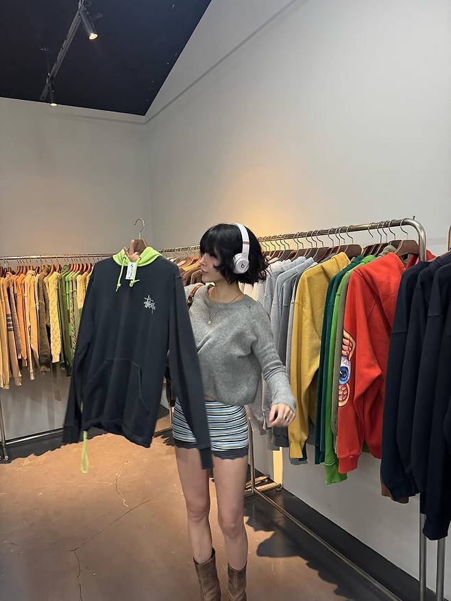 여기에 헤드셋과 롱부츠를 더해, 그녀는 자신을 향한 수많은 시선들을 즐기는 듯한 '쿨'한 애티튜드를 완성했다.