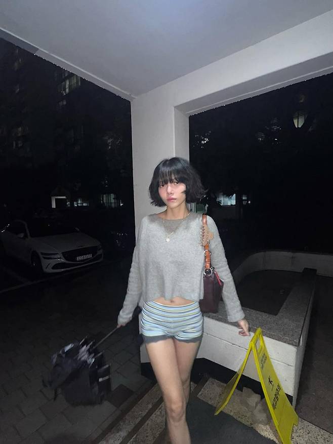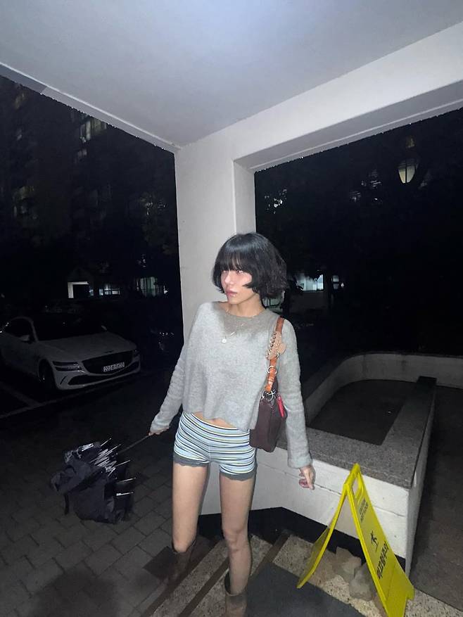 가을비가 내려 옷깃을 여미게 되는 밤, AOA 출신 지민은 오히려 계절을 거스르는 패션으로 자신만의 '뜨거운' 계절을 선언했다.