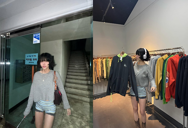 포근한 크롭 니트와 대비를 이루는 이 아찔한 하의는, "이것이 바로 지금의 나"라고 말하는 듯한 강력한 자기표현이다.