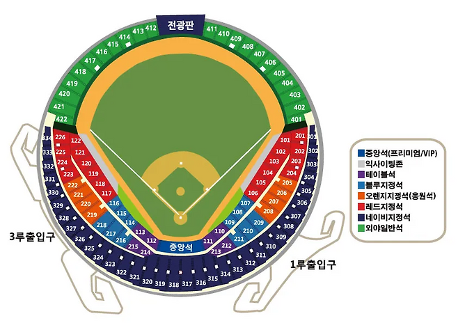 좌석별 시야, 응원 열기, 출입 편의성이 다르므로 자신에게 맞는 위치를 사전에 확인하는 것이 좋습니다.