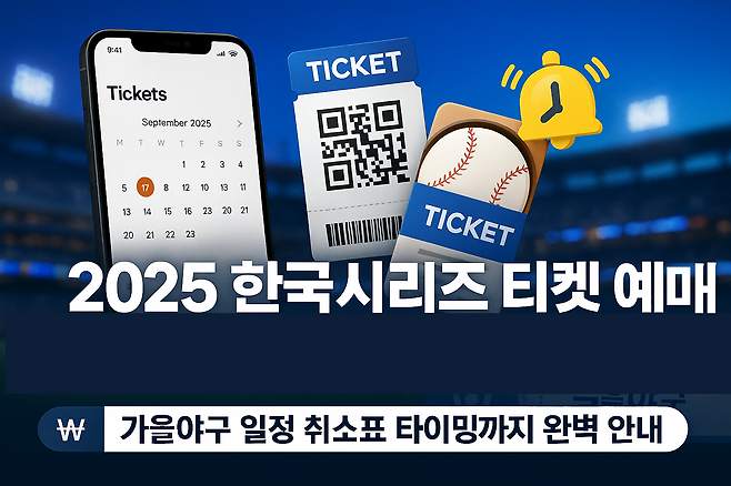 2025년 한국시리즈 티켓 예매는 10월 25일 토요일 오전 11시부터 경기별로 순차적으로 진행됩니다. 1차전은 오전 11시, 2차전은 정오 12시, 이후 매시간 정각마다 7차전까지 예매가 열립니다. 예매가 순차적으로 진행되는 이유는 접속 분산을 위함이며, 예매 시간은 다음과 같습니다.