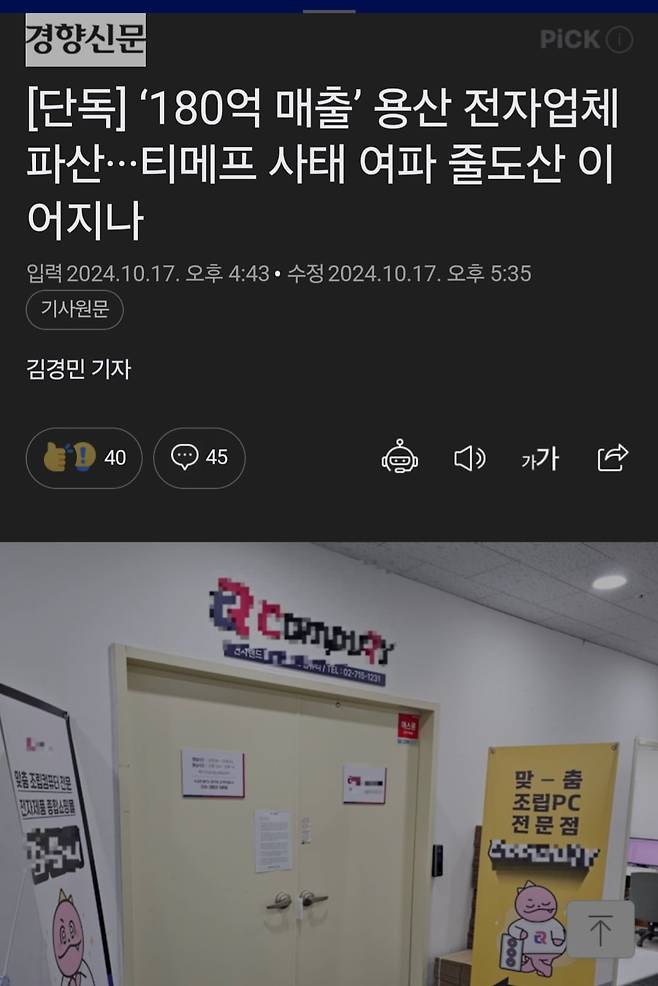 [단독] ‘180억 매출’ 용산 전자업체 파산···티메프 사태 여파 줄도산 이어지나