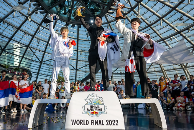 이 값진 기회를 놓칠 수 없었기에 세 선수는 '위플레이'란 팀을 결성했습니다. 이들은 한 몸처럼 움직이며 각종 대회에 출전하고, 연습과 연구에 몰두하며 실력을 키워왔죠. 그리고 마침내 2022년 레드불 페이퍼 윙스에서 우승을 차지하며 세계 정상의 자리에 올랐습니다.