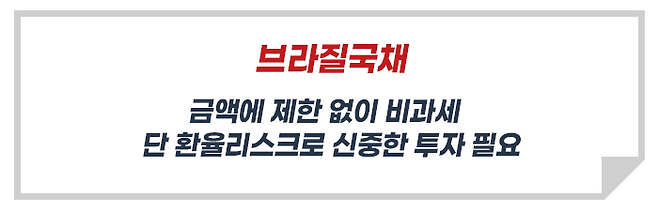 이러한 이유로 한때 고소득의 자산가들에게 브라질국채가 금융절세상품으로 많은 주목을 받았었는데요.
