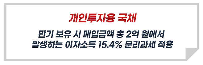 국채 금리가 높지 않다고 생각되더라도, 장기간 누적된 소득이 분리과세되어 종합과세에서 제외되기 때문에 절세 측면에서 관심을 가져볼 만합니다.