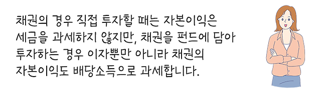앞서 말씀드렸듯이 채권에 투자할 경우, 이자소득은 과세가 되지만 자본이익(매매차익이나 만기상환이익)은 과세가 되지 않습니다.