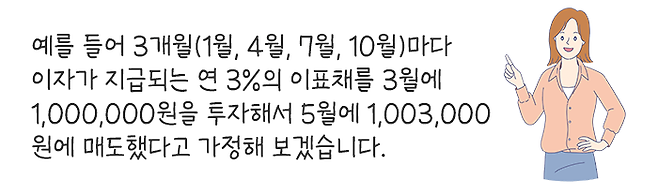 이런 과세 방법 때문에 ‘채권을 투자해서 이자를 받지도 않고 중간에 매도했는데, 왜 세금이 발생하냐’고 문의하시는 분들이 있는 것입니다.