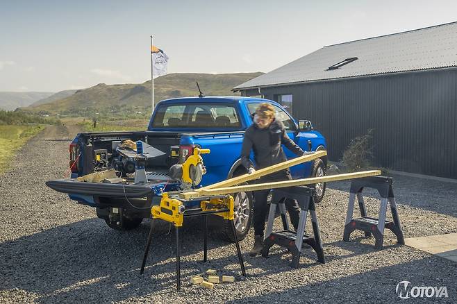 그렇다면 포드 파워 온보드는 어떤 상황에서 활용할 수 있을까? 포드 파워 온보드는 각종 산업 현장에서의 용접 및 시공 작업에 사용할 수 있는 출력을 가지고 있다. 따라서 외부 전원과 멀리 떨어진 시골에서 철제 게이트를 수리하거나 기둥을 설치해야 한다면 레인저 PHEV 적재함에 있는 3.45kW 콘센트를 통해 용접기, 그라인더, 드릴, 시멘트 믹서 등을 구동할 수 있다.