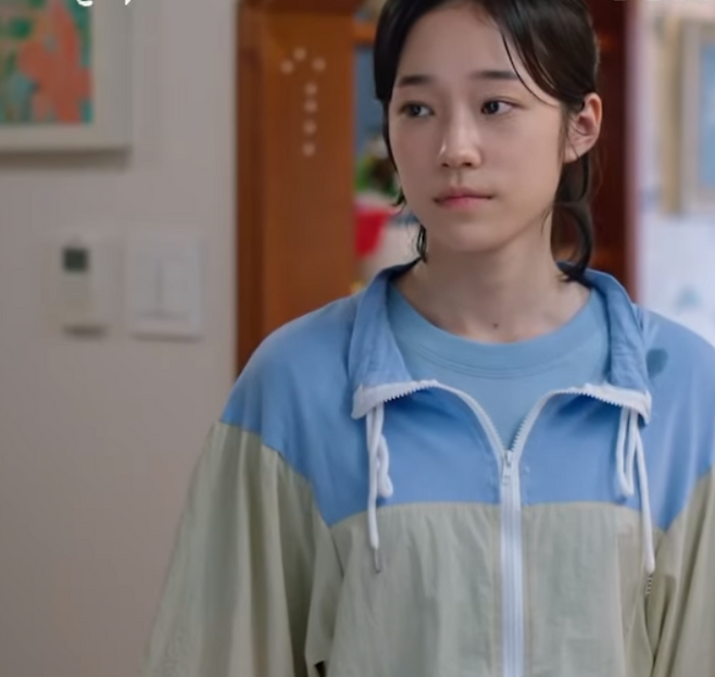 노윤서는 배색 아노락으로 상큼 발랄한 룩을 선보였네요. 노윤서가 선보인 아노락은 TWEE 제품.