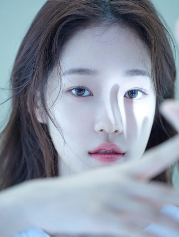 노윤서는 잡티없는 깨끗한 피부로 투명 메이크업이 잘 어울립니다. 자연스러운 아치형 아이브로우로 작은 얼굴을 더 작게 보이게 해줍니다.