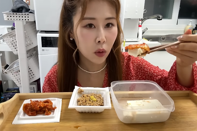 박세미는 낫토를 수란에 비벼 간단하게 섭취했다.