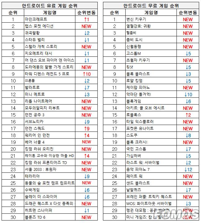 안드로이드 무료 게임 순위에서는 손쉬운 육성을 표방하는 게임이 인기를 얻었다.
