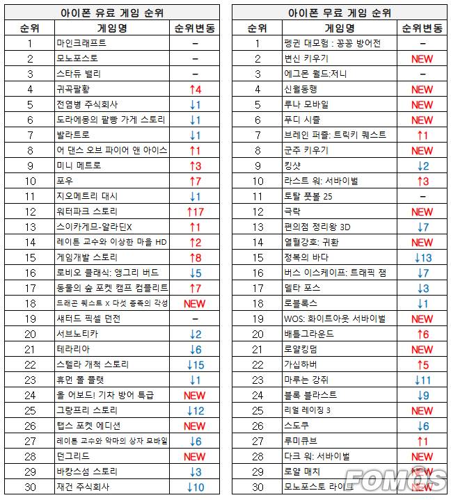이번 주 아이폰 무료 게임 순위에서는 신작 게임들이 차트 상위권에 올랐다.