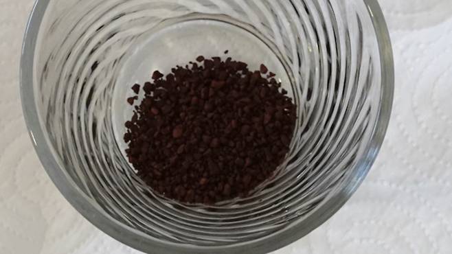 먼저 작은 컵 하나를 준비해서 컵에 커피를 잘 넣어 주세요.