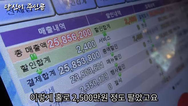 저번 달에 홀에서 2,500만 원 정도 팔았고요. 배민으로 1,100만 원 팔았고, 요기요는 97만 원 팔았네요. 다 합해서 3,700만 원 정도 되네요.