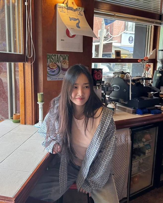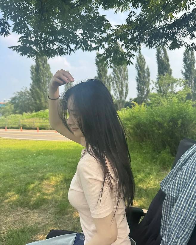 피부 톤과 자연스럽게 어우러지는 밀크 코랄 계열의 톤온톤은 배우희의 여리한 분위기를 더욱 부각시키는 선택이다. 여름 햇살에도 부담스럽지 않은 컬러감, 살짝 붙는 립 조직감의 티셔츠는 그녀 특유의 내추럴한 무드를 유지하면서도 여성스러움을 잃지 않는다. 머리카락을 쓸어 넘기는 그 찰나의 동작조차 그림처럼 정제돼 있다.