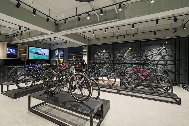 캐논데일 브랜드스토어는 오직 캐논데일 자전거만을 전문적으로 취급하는 공식 스토어로, 혁신적인 디자인과 독자적인 기술력을 갖춘 캐논데일의 철학과 아이덴티티를 공간에 담아냈다. 단순한 판매 공간을 넘어, ‘Come Ride With Us’라는 슬로건 아래 라이더들에게 다양한 경험과 가치를 제공하는 복합 문화 공간으로 운영된다.