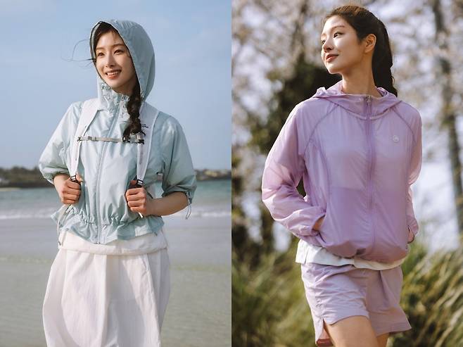 아이더는 여성 전용 라인 ‘시어(Sheer) 경량 재킷’을 통해 실루엣과 기능성을 모두 챙긴 아이템을 선보였다. 초경량 우븐 소재에 등판 통기 구조를 적용해 땀이 나도 쾌적함을 유지하고, 생활 방수 기능으로 봄비에도 끄떡없다. 셔링 디테일과 파스텔 컬러로 여성스러운 분위기까지 더했다.