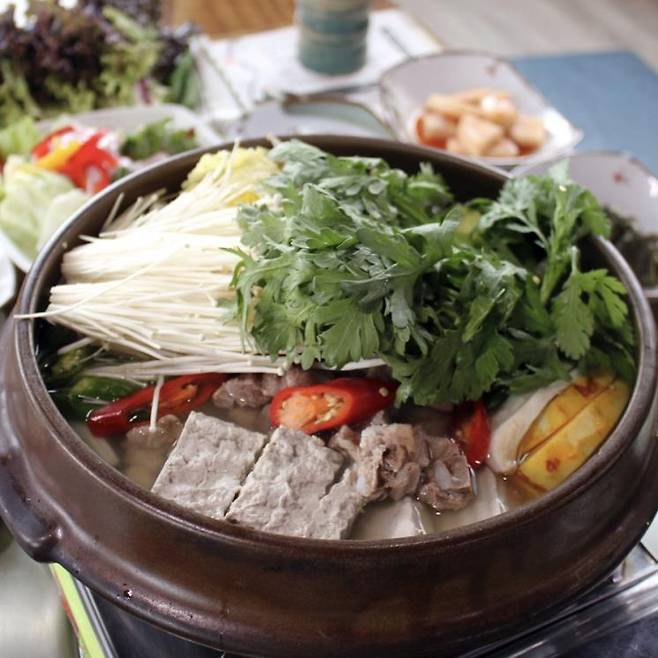 강화도에서도 특히 젓국갈비 맛집으로 소문난 이곳. 커다란 냄비를 버섯과 두부, 고기, 각종 야채로 가득 채워 뚜껑도 안 닫힐 정도로 푸짐하게 내준다. 여기에 산지 농산물로 직접 만드는 10종의 반찬까지 더해지니 배부른 한 끼를 즐길 수 있겠다. 젓국갈비는 깊고 고소한 육수에 큼직한 갈비가 들어가 육향까지 배어 있다. 갈빗살이 부드럽기 때문에 남녀노소 모두가 즐길 수 있을 것. 이곳에서는 젓국갈비뿐만 아니라 약쑥 시래기밥, 청국장, 순두부찌개 등을 맛볼 수 있으니 함께 주문해 보자.