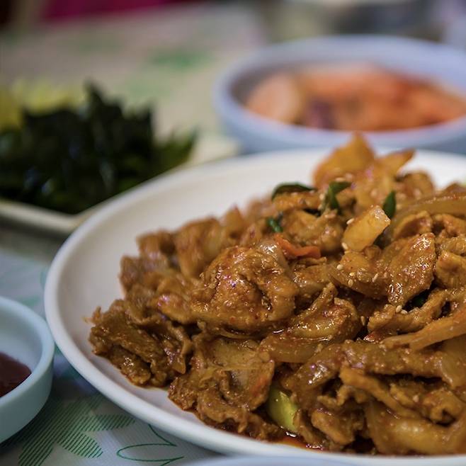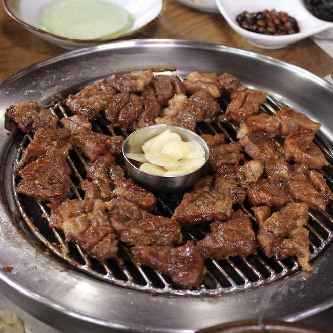 유일무이한 젓국갈비 보유 지역답게 남문식당 바로 근처에도 젓국갈비 맛집이 있다. 특히 이곳은 돼지 숯불구이를 함께 맛볼 수 있는데 젓국갈비만으로는 아쉽다면 돼지 갈비를 함께 시켜 푸짐하게 즐기기 좋겠다. 젓국갈비에는 야채, 갈비와 함께 칼칼함을 더해줄 고추가 들어가는데 덕분에 속까지 뜨뜻해지는 해장 효과도 볼 수 있을 것. 기호에 맞게 준비된 젓갈이나 고추를 추가해 즐기면 된다. 특제 양념으로 숙성한 돼지갈비뿐만 아니라 중독성 강한 맛의 장아찌 비빔밥, 100% 국산콩으로 만든 두부김치까지 맛볼 수 있으니 참고하자.
