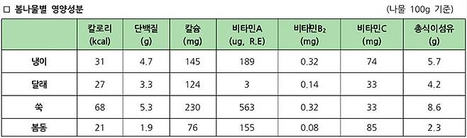 📌 흐르는 물에 3회 이상 깨끗이 씻은 후 섭취하는 봄나물