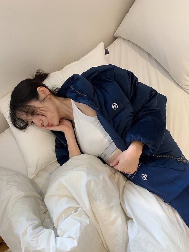 침대 위에서 담긴 컷들에서는 패딩 칼라를 살짝 올려 얼굴을 반쯤 가린 포즈까지 더해져 부드럽고 아늑한 분위기가 한층 강조됐어요.