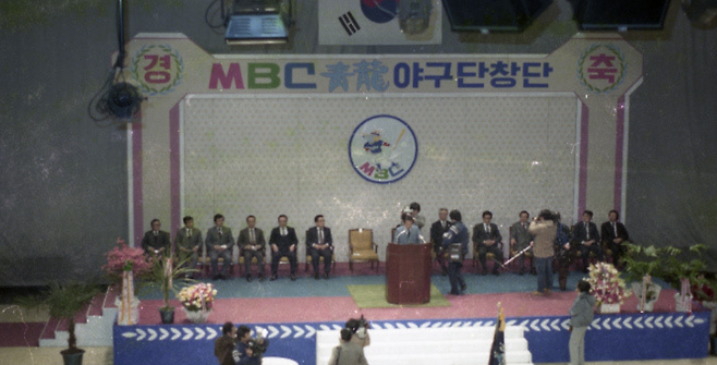 『국내 프로야구 창설 작업을 주도해 온 MBC 청룡 야구팀이 26일 상오 문화체육관에서 창단식을 갖고 화려하게 출범했다. 수도 서울을 본거지로 삼은 MBC 청룡 팀의 이날 창단식에는 박영수 서울시장과 서종철 한국야구위원회(KBO) 총재를 비롯한 KBO 임원과 각 구단 관계자 및 MBC 임직원 등이 참석, MBC 청룡의 무궁한 발전을 기원했다.』