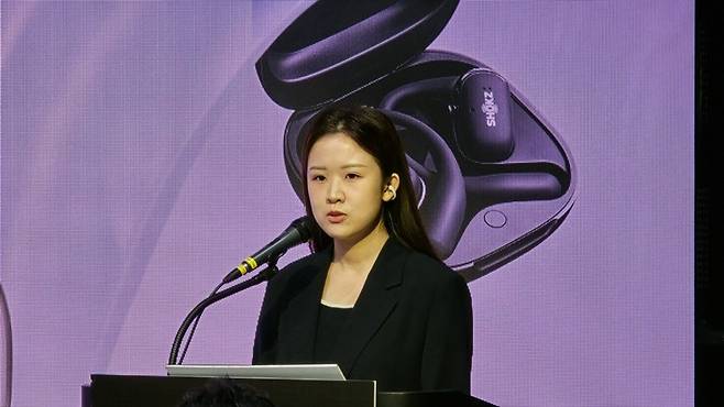 글로벌 오픈형 이어폰 브랜드 샥즈는 이날 행사에서 오픈이어 사운드 기술을 집약한 오픈닷 원, 오픈핏 2+ 등 신제품 2종을 출시했다.