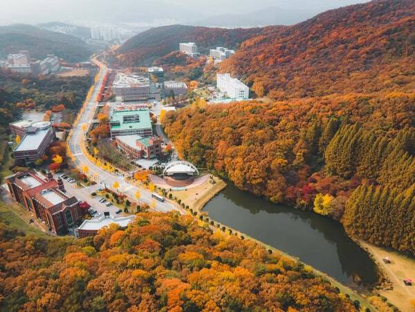 경기도 용인에 위치한 한국외국어대학교 글로벌캠퍼스는 이국적인 캠퍼스의 정취가 매력적인 곳입니다. 특히 가을이 되면 울창한 나뭇잎에 붉거나 노란 단풍물이 들어 해외에서나 마주할법한 이국적인 단풍 풍경이 펼쳐지는데요. 최근 SNS상에서 숨은 단풍명소로 알려지며 주말이면 단풍 나들이객들로 북적이는 곳입니다.